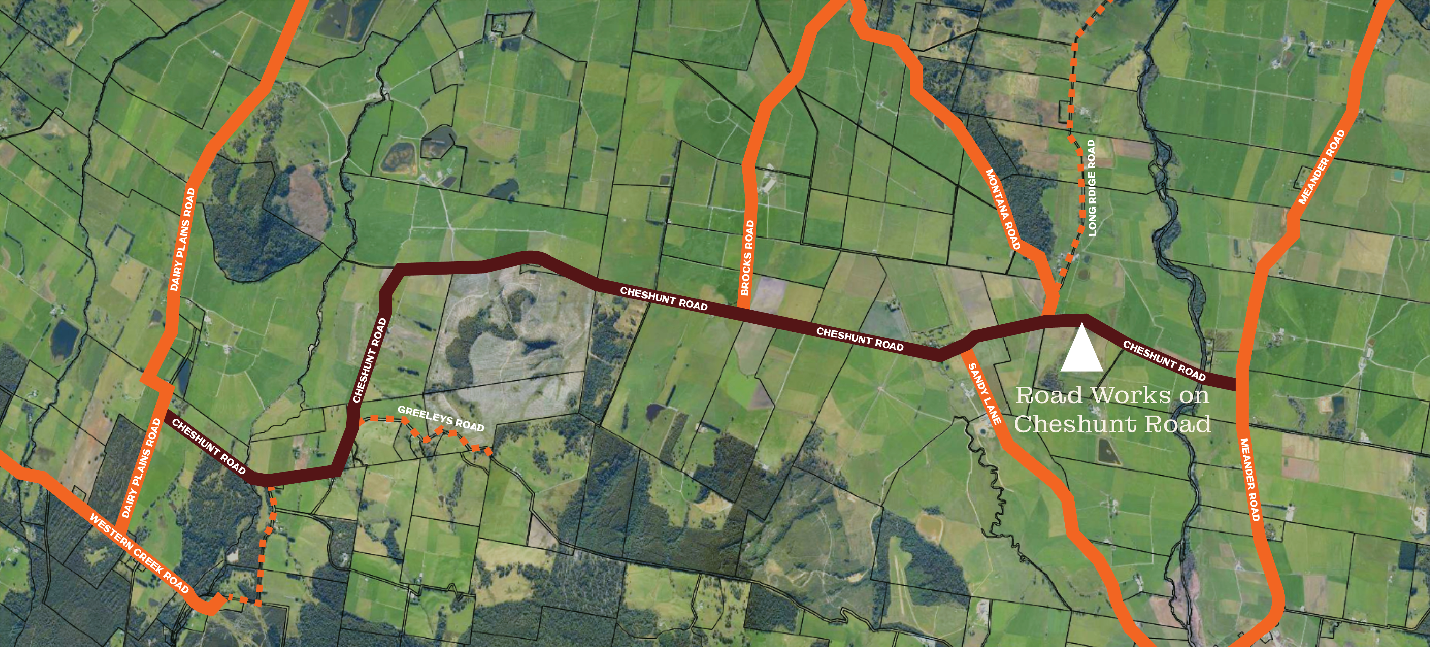 Cheshunt Road, Meander will be temporarily closed to all traffic from 5 January 2026 to 30 January 2026 to enable Walters Contracting to undertake construction of a private stock underpass on a section of Cheshunt Road, near 115 Cheshunt Road, Meander.